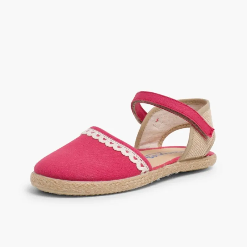 Espectaculares Alpargatas Para Meninas Numa Combinação De Tecidos: Peito Do Pé De Lona E Traseira De Linho. As Tradicionais Alpargatas De Sempre, Agora Renovadas Com Um Estilo Descontraído E Actual, Para Que A Sua Pequena Princesa Fique Maravilhosa Nesta Primavera-Verão, Tanto Com Vestidinhos, Como Com Calças.