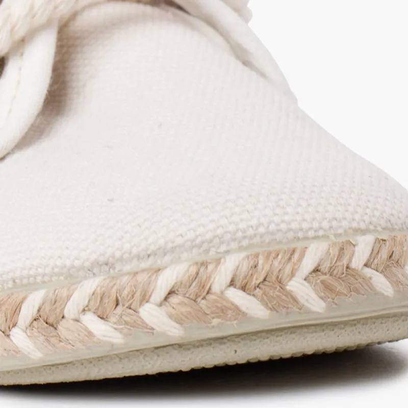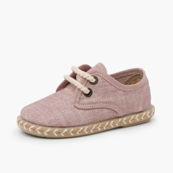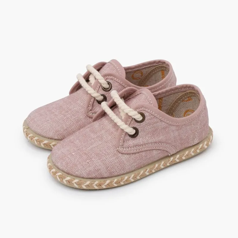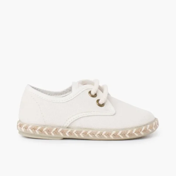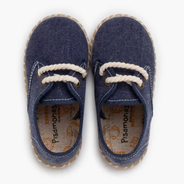 Sapatos De Atacadores Para Menino Perfeitos Para Primavera Verão. Sapato Infantil Tipo Blucher Em Lona, Com Uns Atacadores Super Originais Com Um Toque Rústico E Uma Sola De Juta Bicolor Muito Estival.