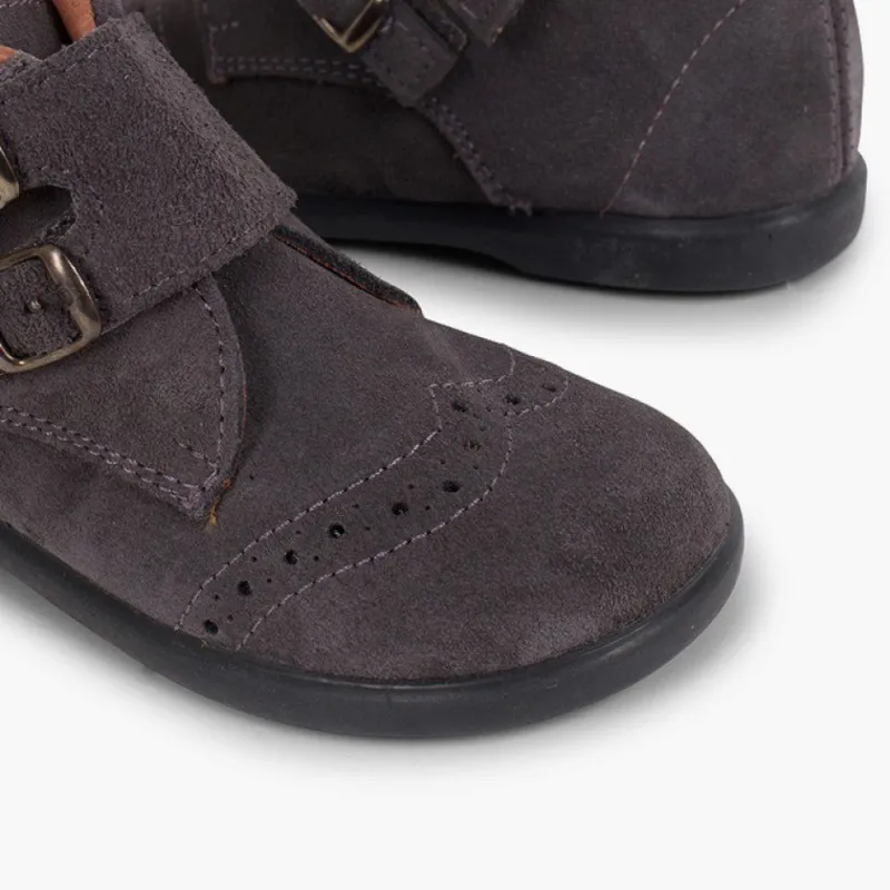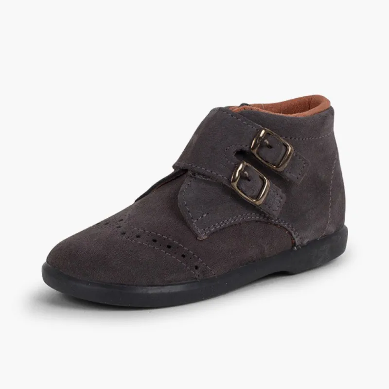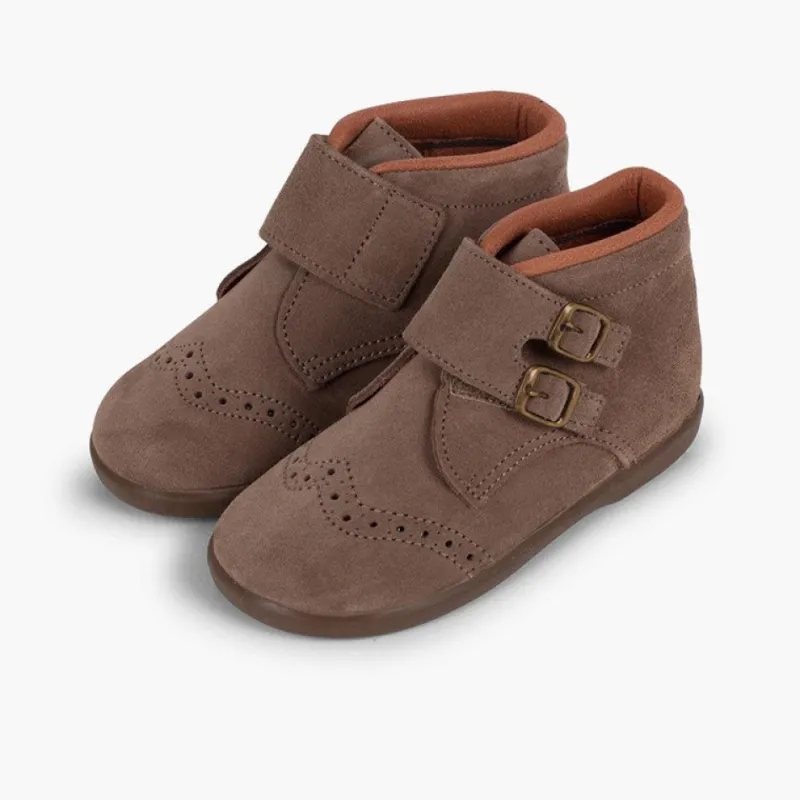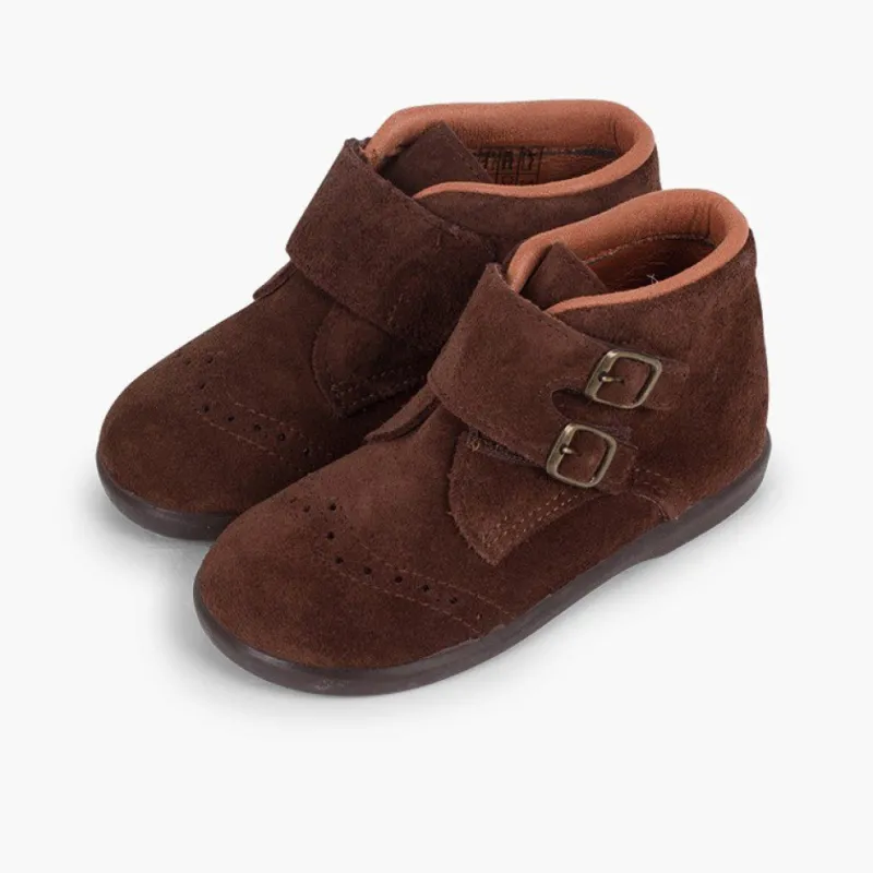 Além Do Desenho Tão Elegante De Camurça Com Picotado E Duas Fivelas Como Adorno, Estes Sapatos De Camurça Para Criança São Tão Confortáveis E Quentinhos Que O Seu Filho Não Vai Querer Tirá-Los.