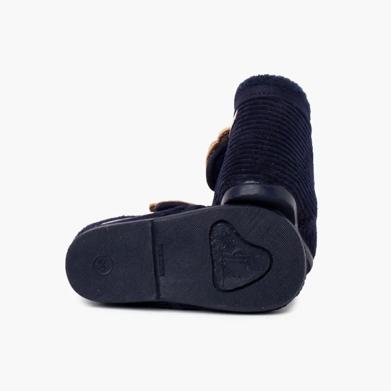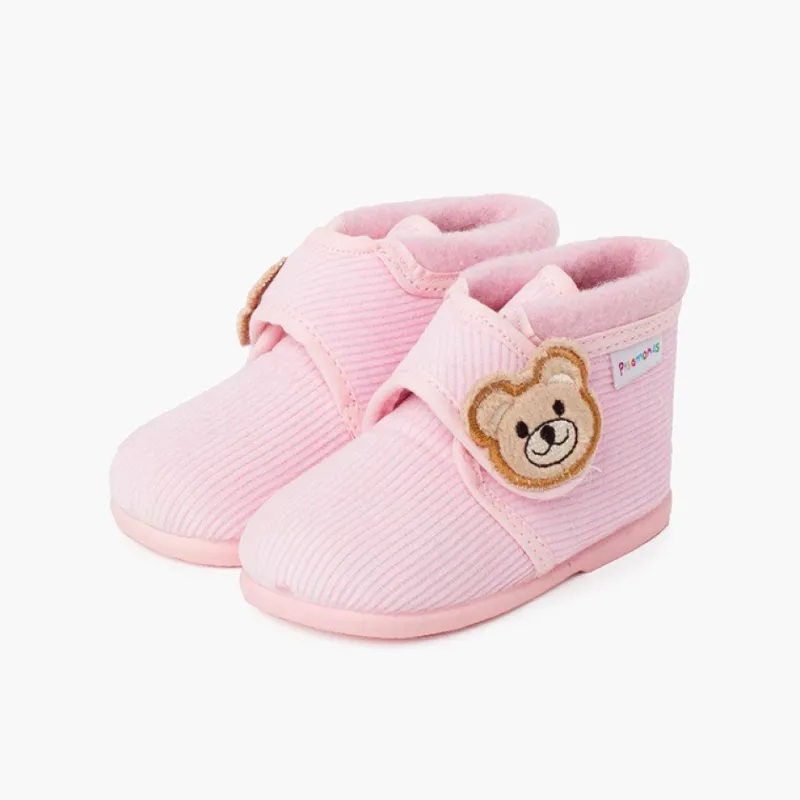 Os Seus Filhos Não Vão Resistir A Estas Pantufas Tipo Botinha De Bombazine Quentinhas E Muito Fáceis De Pôr E Tirar, Com Um Coquete Design Unissexo Em Azul-Marinho E Rosa E Um Adorável Ursinho Nas Partes Laterais.