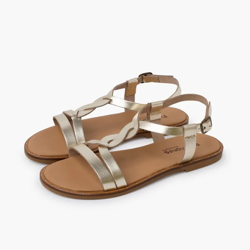 Estas Sandálias De Pele São Perfeitas Para Mães E Meninas Elegantes Que Procuram Um Calçado Confortável E Cheio De Estilo. As Tiras Centrais São Entrelaçadas Num Desenho Original Em Forma De Oito E Estão Disponíveis Numa Ampla Variedade De Tamanhos, Do 33 Ao 41.
