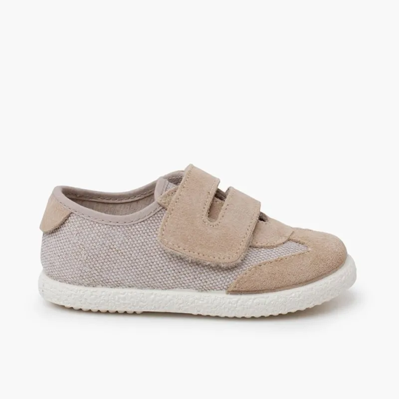 Acrescentamos À Coleção Primavera-Verão Um Novo Modelo Unissexo De Sapatilhas Desportivas De Última Tendência. Estes Ténis São Feitos De Linho Com Detalhes Originais De Camurça. Apertam-Se Com Fecho De Tira Larga Aderente, Porque Na Pisamonas Adoramos Dar Autonomia Aos Mais Pequenos Com Fechos Fáceis Para Que Possam Calçar Os Sapatos Sozinhos.
