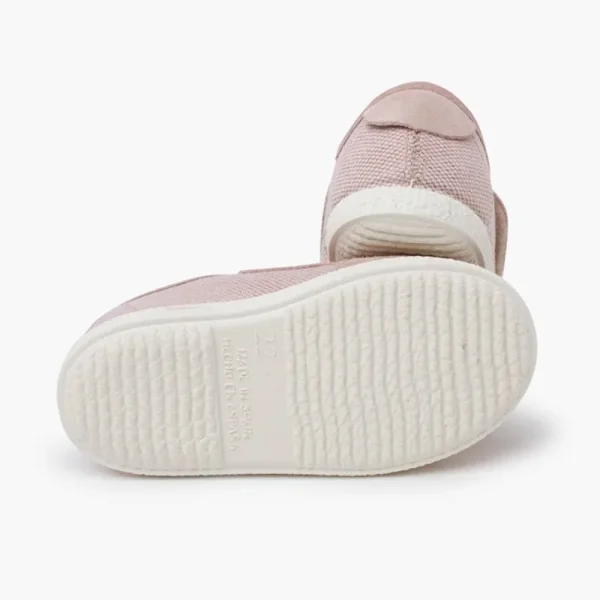 Estas Sapatilhas De Biqueira Arredondada Estão Disponíveis Do Tamanho 22 Ao 30, Perfeitas Para Crianças Até Aproximadamente 5 Ou 6 Anos, E Em Três Tons Pastel Super Primaveris Que Podem Ser Combinados Com Roupas Claras E De Cores Neutras, Como Bege, Branco, Cinza Ou Rosa Claro. Os Detalhes Em Camurça No Fecho, Biqueira E Calcanhar, Um Pouco Mais Escuros Que O Resto Do Sapato, Dão Um Toque Elegante, Perfeito Para Usar Em Qualquer Ocasião. A Sola De Borracha Branca Proporciona Boa Tração E Estabilidade, O Que É Muito Importante Para Crianças Mais Pequenas Que Não Param Quietas.